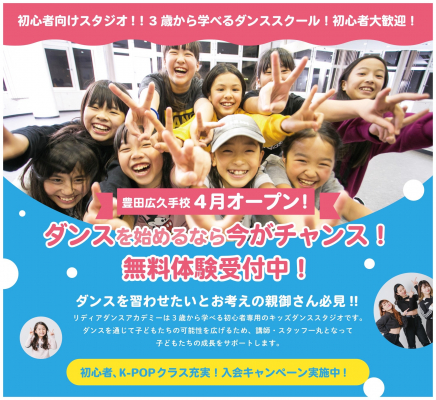 愛知県豊田市に愛知県で2店舗目となるキッズダンススタジオを出店! 2022年5月、リディアダンスアカデミー豊田校が豊田市広久手にオープン!