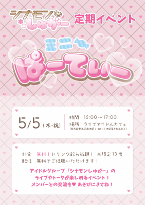 王道系アイドルグループ「シナモンしゅがー」無銭イベント「ミニぱーてぃー」5月5日(木)開催