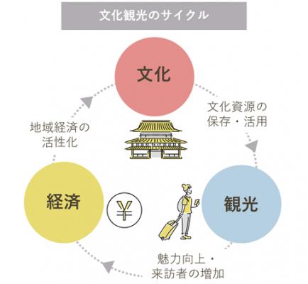 このような状況を受け、2020年5月1日に「文化観光拠点施設を中核とした地域における文化観光の推進に関する法律」(以下、文化観光推進法)が文化庁より施行され、地域の文化資源の観光活用によって文化についての理解を深めるための観光「文化観光」を推進しています。