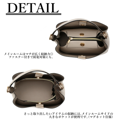 財布、化粧品などデイリーユースをすっぽり収納でき実用性も備えてあります。