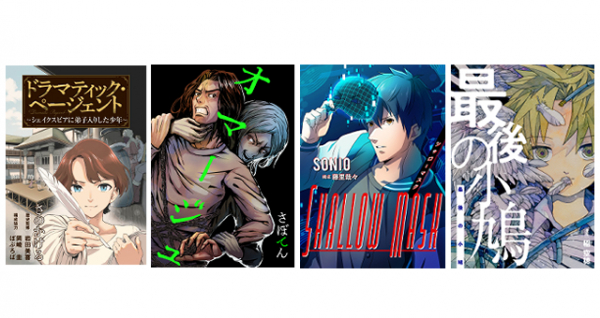 コミックほげっとの新作マンガ、めちゃコミで続々配信中!『ドラマティック・ページェント〜シェイクスピアに弟子入りした少年〜』『オマージュ』『シャローマスク』『最後の小鳩』