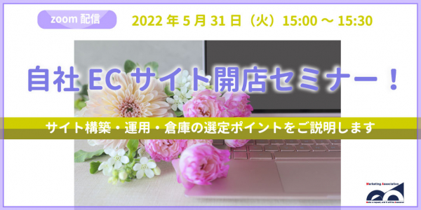 ECサイトの運営代行サービスを提供しているマーケティングアソシエーション株式会社(本社:東京都台東区 代表取締役:相内あゆ美、以下当社)は、2022年5月31日(火)に、ウェビナー「自社ECサイト開店セミナー!サイト構築・運用・倉庫の選定ポイントをご説明します」を開催いたします。