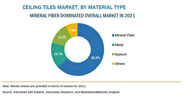 建築・建設業界では、建物の美観を向上させるために、より多くの色、多様な穿孔デザイン、木材や金属などの多様な材料を使用する傾向が高まっています。また、多くの建築家やデザイナーは、吸音や透過が重要な要件であるオフィスや施設の建物で、開放型プレナム天井や開放型フロアプラン設計を採用することに注力しています。これらのデザインは、美観と吸音性を高める、タイルの需要を押し上げると考えられます。