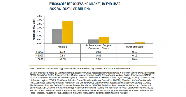 内視鏡再処理の市場規模は、2022年の24億米ドルからCAGR9.7%で成長し、2027年には38億米ドルに達すると予測されています。同市場の成長は、対象疾患の診断と治療のための内視鏡検査の必要性の増加、汚染された内視鏡による関連感染のリスクの高さ、高齢者人口の増加と内視鏡手術の増加、医療当局による再処理ガイドラインの改善への重点化によるものです。また、医療インフラや内視鏡の研究分野を改善するための投資、資金、助成金の増加が、今後、市場成長の機会を提供することが予測されます。