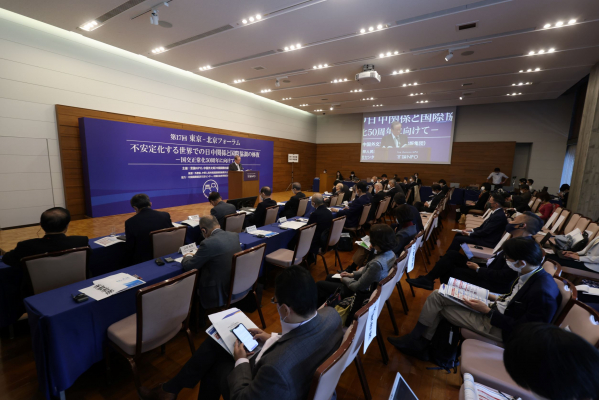 「東京−北京フォーラム」は中国と真正面から議論できる世界で唯一の対話となっています。今回は、ロシアによるウクライナ侵攻や、深刻化する米中対立を受けてますます緊迫する世界情勢の下で、世界の平和や分断化する世界における国際協調の修復をテーマに、今年国交正常化50周年を迎える日中関係の今後を考える、極めて重要な民間の対話となります。こうしたテーマを設定したのは、分断化する世界の中でこの分断をこれ以上悪化させずに、今後の世界の平和秩序を考えるため、中国の行動は極めて重要であり、そうした中国との対話が非常に重要な局面であるとの認識によるものです。