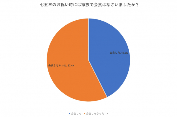 七五三のお祝い時には家族で会食はなさいましたか? と尋ねたところ、「会食した」(42.6%)、「会食しなかった」(57.4%)という結果となりました。コロナ渦という状況でなければ違った結果になったのかもしれません。