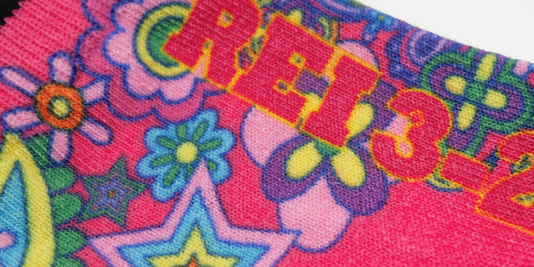各種靴下は、靴下専用のプリンターでフルカラープリントされます。染色した糸で編み込むのではなく、白の糸で編んだ靴下を筒状のままセットし、螺旋状にプリントされるので、360度継ぎ目なしのプリントが可能です。写真やイラストもくっきり鮮やかに再現できます。是非、お気に入りの写真やオリジナルの柄・イラストを全面にプリントしてみてください。