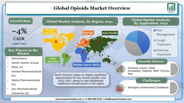 Research Nester Private Limitedは、オピオイド市場の予測評価を提供する調査レポートを2022年07月 19日 に発刊しました。これは、オピオイド市場の成長ドライバー、市場機会、課題、脅威など、いくつかの主要な市場ダイナミクス強調しています。