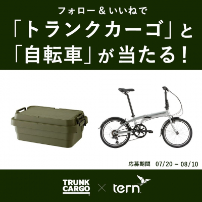 インスタグラムでトランクカーゴとTernJapanのアカウントをフォローしているフォロワー様に抽選で、ロータイプのトランクカーゴ「TC-50S LOW」を3名様に、Ternの折りたたみ自転車「LINK A7」を1名様にプレゼントいたします。この機会に是非ご応募ください。