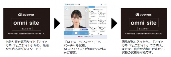 「AIイメージフィット」は、「店舗に在庫のないフレームを試着したい」「自分に似合うメガネがわからない」といった、お客様一人ひとりのニーズに合わせること。また、コロナ禍でのニューライフスタイルにも合致するサービスとして企画・開発いたしました。