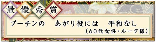 【最優秀賞】プーチンの あがり役には 平和なし (ルーク様・60代女性)