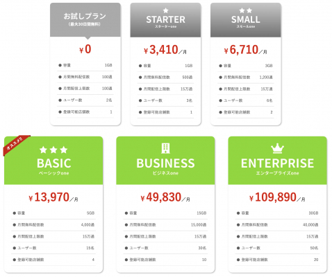 料金形態は、お試しプランを含め6つのプランをご用意しました。