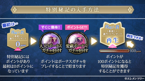※誕生日特別秘記は、ボーナスガチャをプレイすると手に入れることができます。