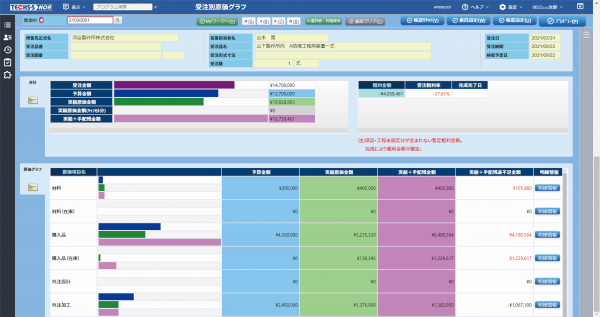 【製品画面イメージ:受注別原価グラフ】