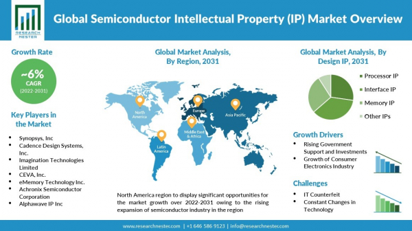 Research Nester Private Limitedは、半導体知的財産(IP)市場の予測評価を提供する調査レポートを2022年08月 30日 に発刊しました。これは、半導体知的財産(IP)市場の成長ドライバー、市場機会、課題、脅威など、いくつかの主要な市場ダイナミクス強調しています。