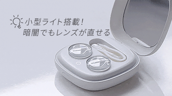 本体には小型ライトを搭載。明るさが足りない場所でも、メイク直しができたり、レンズの位置を確認するのに役立ちます。