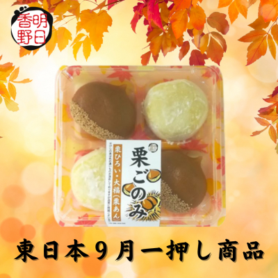 栗あん入りの栗大福と、栗の形をした可愛らしいお団子の詰合せで、たっぷりと栗を味わえます。