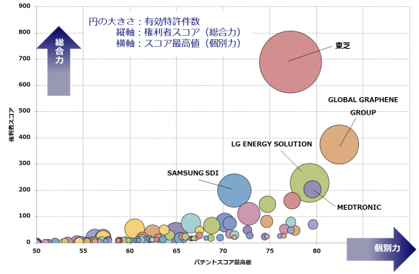 この結果、「総合力ランキング」は1位 東芝、2位 GLOBAL GRAPHENE GROUP(米)、3位 LG ENERGY SOLUTIONとなりました。
