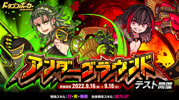 株式会社アソビズム(本社:東京都千代田区、代表取締役:大手智之)は、App Store・Google Playにて好評配信中のリアルタイム合体カードバトル『ドラゴンポーカー』で、2022年9月16日(金)より「アンダーグラウンド」をテスト開催いたします。
