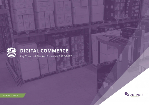 Juniper Research「デジタルコマース:重要動向と市場予測 2022-2027年 - Digital Commerce: Key Trends & Market Forecasts 2022-2027」はデジタルコマース(電子商取引)市場の最新動向を調査し、デジタルバンキング、eコマース、電子発券、振込市場を分析しています。