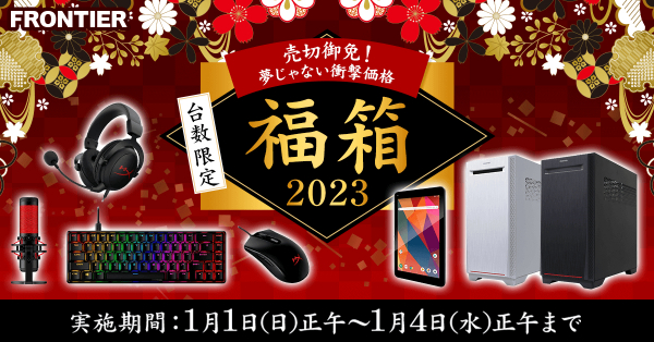 【FRONTIER】 ゲーミングPC・人気周辺機器など全16商品を衝撃価格でご用意!お得な「福箱2023」は元旦より発売開始 〜12/28正午よりラインナップ大公開〜