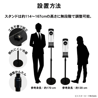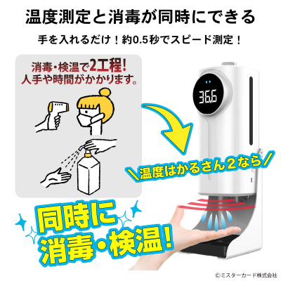 ミスターカード株式会社(本社:埼玉県川口市)は、お客様の声をカタチにした2023年新機能を追加した非接触式 2WAY温度測定&消毒ディスペンサー「温度はかるさん2スタンドセット」を2023年1月18日(水)から発売いたします。おでこのどちらでも温度測定できる2WAY温度測定の機能を追加。寒い季節に測定する手のひらが冷えていると温度が低く表示されてしまうため、おでこでもう1度測定することで寒さの影響が少ない温度で測定可能になりました。スタンドセットタイプで手を入れて約0.5秒で温度と消毒が同時にできます。電源はUSB給電式を推奨し、乾電池式で短時間の利用可能。補充の手間を省ける大容量1200mlタンクを搭載。赤外線センサーで測定。噴射量20段階、音量5段階、多言語対応などの機能搭載。使い始めや定期的なメンテナンスとして連続10秒間連続噴射して洗浄するノズルクリーニング機能付き。すぐ使える!案内パネル、漏斗、動物おめんのオリジナルグッズ3点付き。オフィスやお店、学校、施設などの安全につながる感染予防対策グッズをご提案いたします。