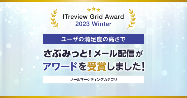 メール配信ツール「さぶみっと!メール配信」、「ITreview Grid Award 2023 Winter」High Performerの称号を受賞!受賞を記念したレビューキャンペーンも実施