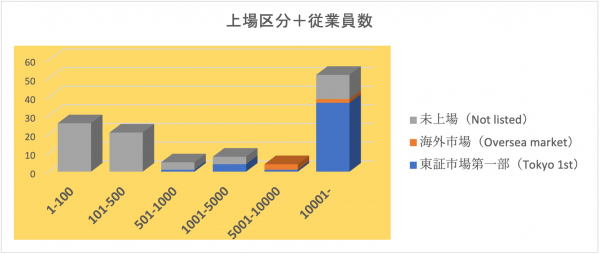 また所属組織の更なる分析では、「上場区分+従業員数」のグラフで、資格取得者の数が最も多いのは、東証市場1部上場で従業員数が1万人を超える企業であることがわかります。