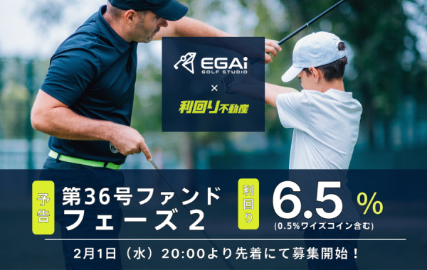 不動産クラウドファンディング「利回り不動産」を手掛ける、株式会社ワイズホールディングス(本社:東京都港区、代表取締役:和泉隆弘)は都内を中心にインドアゴルフスタジオを30店舗以上展開する「アースゴルフアカデミー」(株式会社アースアカデミー/本社:東京都品川区 代表取締役 阿部政樹))とジョイントし「利回り不動産 第36号ファンド・EGAi中延店PJフェーズ2」として、2月1日(水曜)よる20時より先着方式にて募集開始いたします。