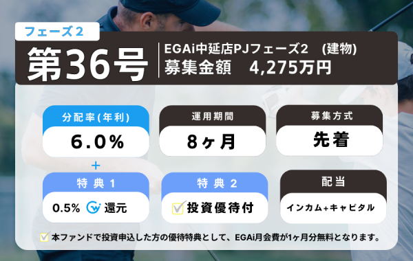 ・案件情報:「第36号ファンド:EGAI中延店PJフェーズ2」