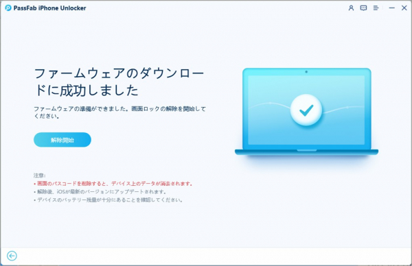 Step5:「解除開始」をクリックしてiPhoneのロックを強制解除します。