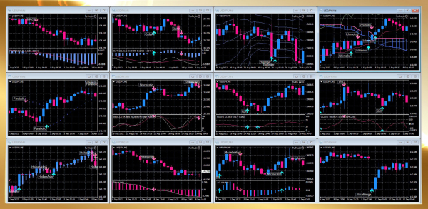 テクニカル分析を行い矢印サインにて自動エントリーを行うシステムです。