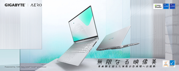 2023年2月22日 - GIGABYTE Technology Co., Ltd. 台湾・新北市 - コンピュータテクノロジーで世界をリードするGIGABYTE Technologyは、CPUに第13世代Intel Core Hシリーズプロセッサ、GPUにNVIDIA GeForce RTX 40シリーズLaptop GPU採用した有機ELパネル搭載クリエイター向けノートPC「AEROシリーズ」3モデルをGIGABYTEノートPC取扱店および家電量販店を通して2月23日より販売を開始いたします。