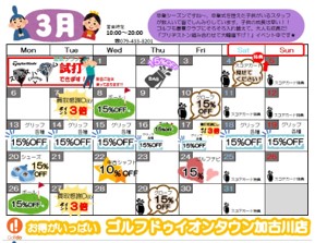■企画内容:お得がいっぱい ゴルフドゥ!イオンタウン加古川店(3月イベントカレンダー)