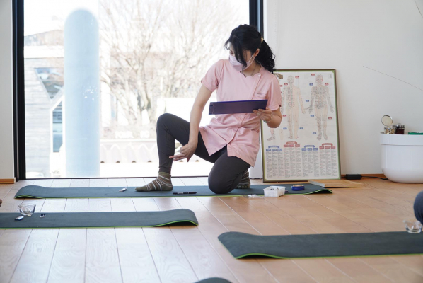 3月15日(水)Roots of Life TOYAMAにて行われた第3回の講座では、前半には妊娠中の不快な症状をやわらげお産に向けた身体の準備を整えるマタニティヨガの体験と、赤ちゃんの抱っこの仕方、後半には妊婦さんがご自宅でできるお灸について学びました。