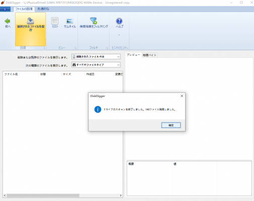 ステップ2.スキャンが終わると、検出したファイルが一覧表示されます。プレビューできます。