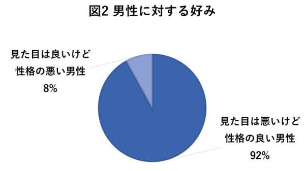 女性の男性に対する好みについて調査を行ったところ、「見た目は悪いけど性格の良い男性」を選ぶ女性が9割以上を占める結果となりました。