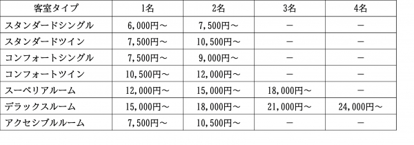 ■ 素泊まり料金(1泊1室あたり/税込)