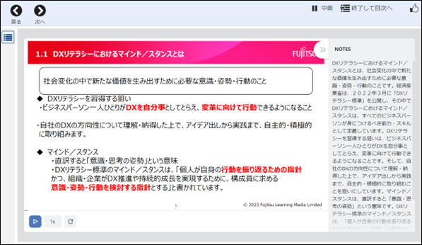 「DXリテラシー DXへの初めの一歩 コンテンツパック」画面イメージ