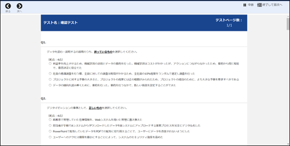 「DXリテラシー DXへの初めの一歩 コンテンツパック」 確認テスト画面イメージ
