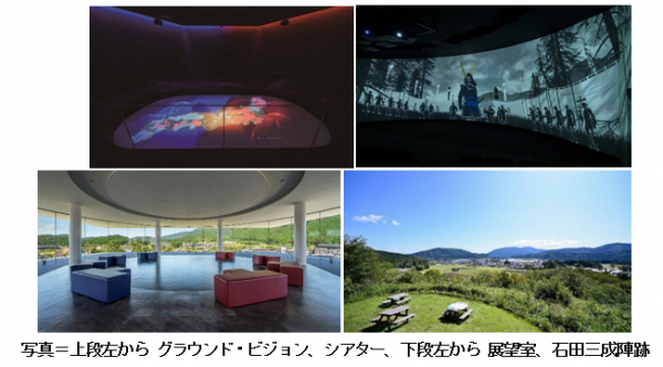 概 要:全国の大名を巻き込んだ「関ケ原の戦い」の全容を一目で俯瞰できる床面スクリーンの「グラウンド・ビジョン」、風や振動、光と音の演出による大迫力映像で東西両軍の激突を体感できる「シアター」、貴重な収蔵コレクションの展示、点在する陣跡を一望できる360度全面ガラス張りの最上階(5階)の展望室など、天下分け目の「関ケ原の戦い」を楽しく学ぶことができる体験型の施設です。