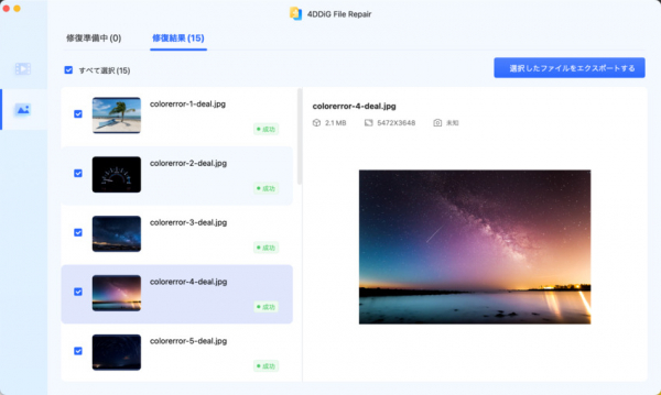 破損の具合にもよりますが、多くの場合、数分程度で修復作業が完了します。HEICからJPGの画像変換を、大量に一括で行うという際には、是非「4DDiG File Repair」の準備もご検討ください。
