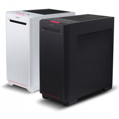 GAシリーズは、ヘアライン加工が施されたフロントパネルにワンポイントの赤色LEDを搭載し、シンプルかつエレガントなデザインのミドルタワーです。冷却性とカスタマイズ性が高く、VGAアームホルダーを標準で装備しているため、大型のグラフィックスカードも搭載可能です。ケースカラーはクールな黒色とインテリアに馴染む白色から選択可能です。