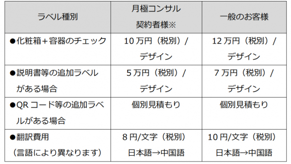 ●ラベルに記載されている文字数(翻訳費用算出のため)