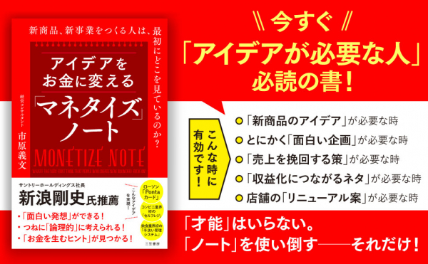 ■『アイデアをお金に変える「マネタイズ」ノート 新商品、新事業をつくる人は、最初にどこを見ているのか?』著者市原義文