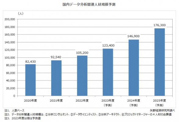 【矢野経済研究所プレスリリース】データ分析関連人材規模に関する調査を実施(2023年) 2023年度の国内データ分析関連人材規模を123,400人と予測、2025年度には176,300人に達する見通し