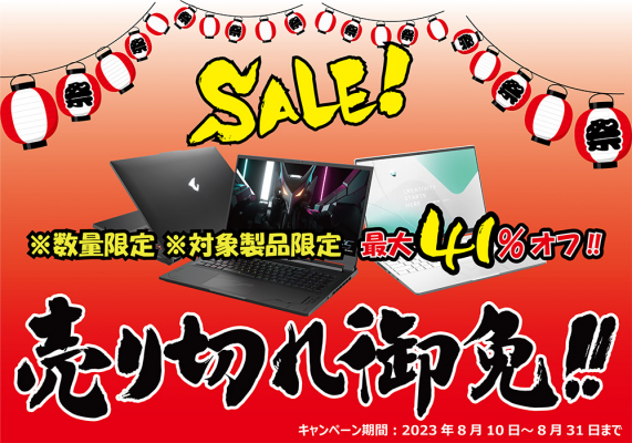 2023年8月10日 - GIGABYTE Technology Co., Ltd. 台湾・新北市 - コンピュータテクノロジーで世界をリードするGIGABYTE Technologyは、2023年8月10日〜8月31日の期間、CPUに第12世代または第11世代Intel Coreプロセッサ、GPUにNVIDIA GeForce RTX 30シリーズを搭載したGIGABYTE製ノートPCを最大41%引きで特価販売するセールを通販サイト「Directショップニューエックス」にて実施いたします。