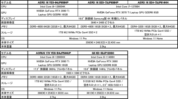 https://www.gigabyte.com/jp/Laptop/AERO-16--Intel-12th-Gen
