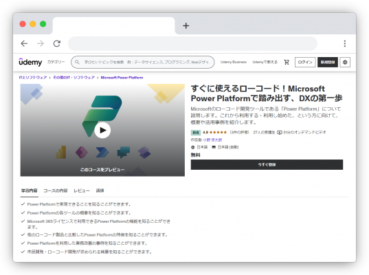 【Udemy】すぐに使えるローコード!Microsoft Power Platformで踏み出す、DXの第一歩