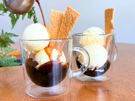 バニラアイスクリームには、味わい深いエスプレッソをかけてコーヒーゼリーとともに広がる珈琲の美味しさをご堪能ください。